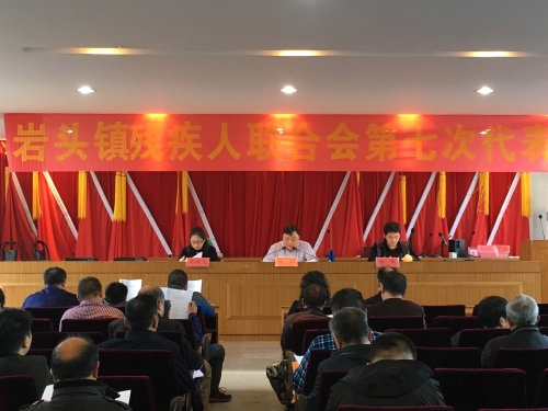 在庄严的国歌声中,岩头镇残疾人联合会第七次代表大会开幕,镇党委委员郑洌主持会议。会议审议并通过了岩头镇残疾人联合会第六届主席团工作报告,报告总结和回顾了六代会五年来的主要工作成就:加强自身建设,完善服务体系,增强服务意识,保障服务质量,提升了残疾人工作者素质队伍;外扶内植并举,积极选送优秀残疾人参加各项培训,拓宽就业与创业渠道,同时大力支持在家残疾人发展农村种植和养殖业,使残疾人收益提高,且参与社会活动日益广泛;帮扶与救助结合,使扶残助残的社会环境得到改善。报告还确定今后一个时期残疾人事业的主要任务:进一步落实扶贫救助措施,扩大救助的覆盖面和救助力度,有效落实低保、“两项补贴”、助学等扶贫措施,逐步完善残疾人参加养老、医疗等社会保险机制;以“人人享有康复服务”为目标,整合社会康复资源;多渠道、多层次、多形式地使残疾人劳动就业逐步普及、稳定、合理;维护和保障残疾劳动者的合法权益。真正做到扶到实处,救在急处,帮出实效。